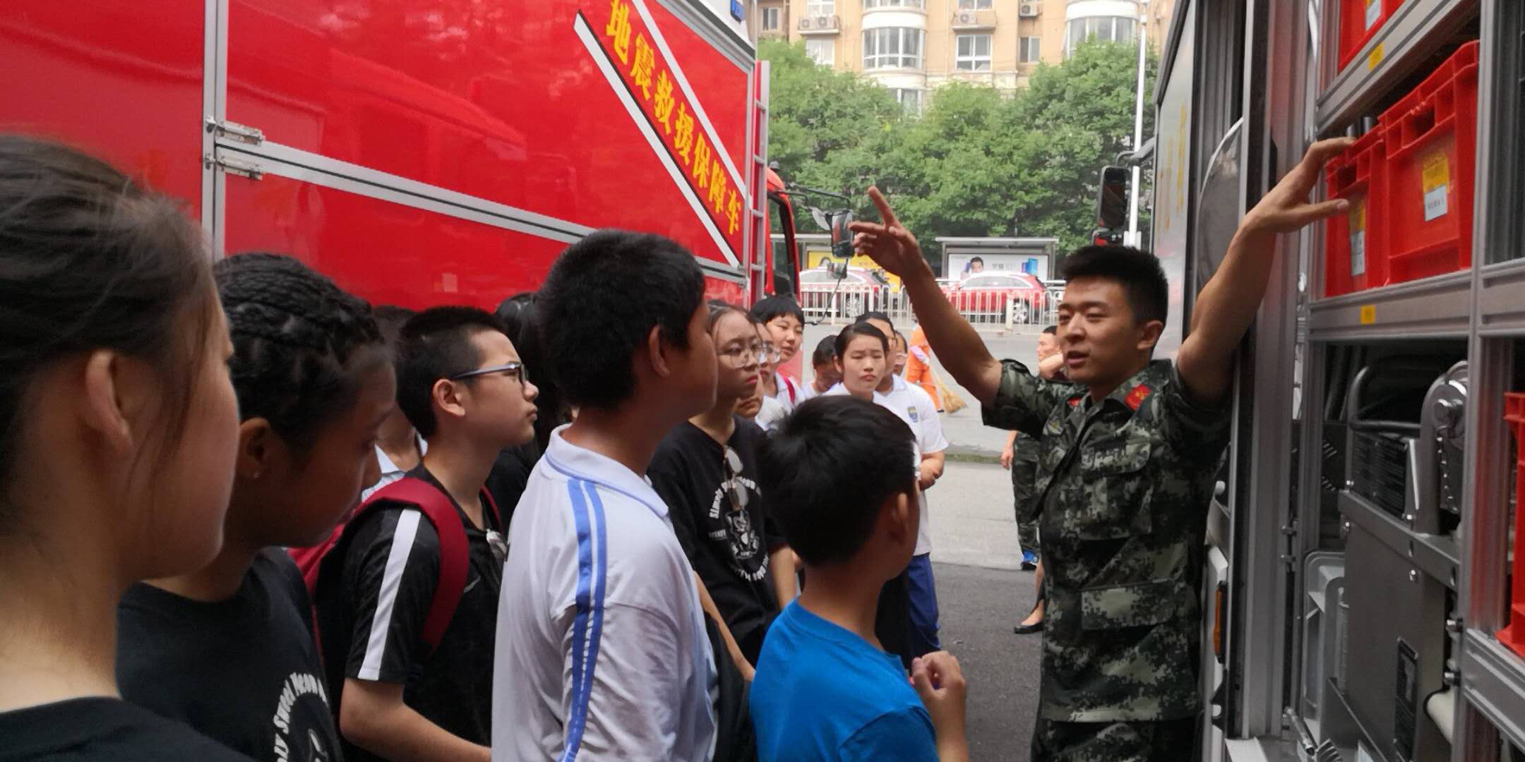 因为在节日里还有任务,所以战士们不能回家与家人们一起欢度端午。但对于他们来说,师生们的到来已经弥补了他们的遗憾,同学、家长和老师一踏进这里就立即被他们视为了“家人”。战士们热情高涨,带着同学、老师与家长一起参观了他们的消防工具与消防车。