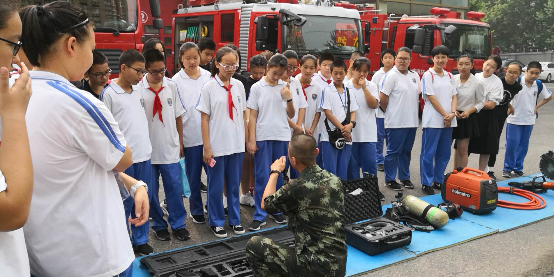 踏着初夏的影子,6月18日,首师实验花园校区七年级初一年级的班主任姚鲲老师与同学们及家长一起来到了望京消防中队,慰问那些正顶着烈日辛苦训练的战士们。