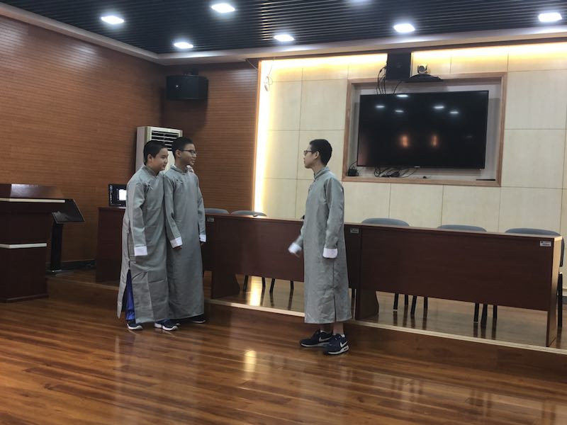 看过了战士们那惊险而又帅气十足的消防演习,同学们也都跃跃欲试,不能总让战士们给我们表演啊!于是我们来到消防中心会议室,为战士们带来我们的精彩节目,让战士们多感到一份端午温情。